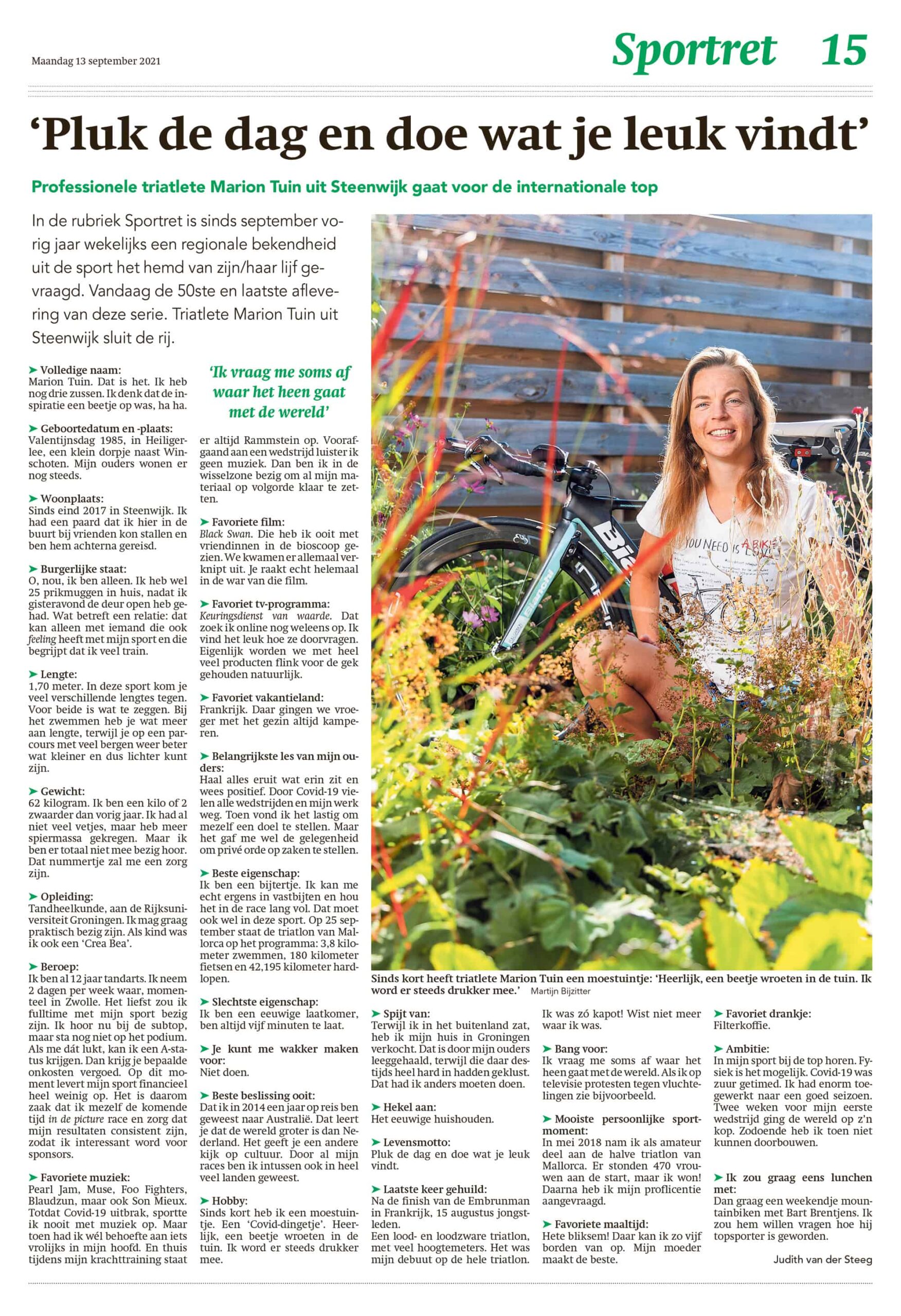 Lees hieronder het interview van 13 september 2021 in de Meppeler Courant met Marion Tuin.